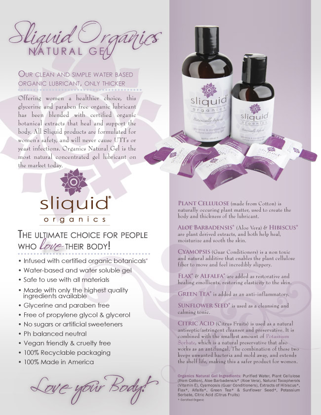 美國Sliquid 人體潤滑液,世界上唯一完全不含甘油及防腐劑的私密處潤滑產品,所有Sliquid產品均採用安全配方,以保護女性安全為生產宗旨。我們的目標是為了女性生產安全天然的人體潤滑液以及其它能夠提高性欲快感的密處秘產品。
