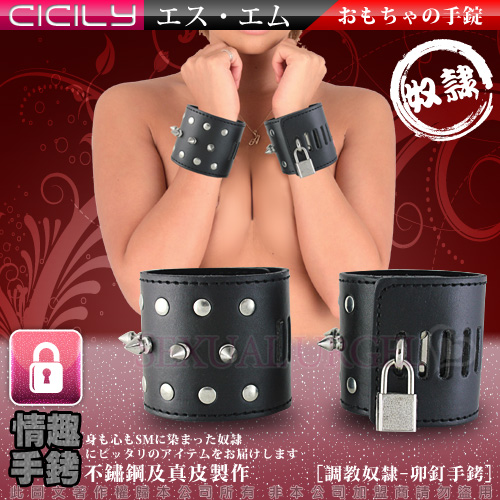 .商品內容:虐戀精品CICILY-調教奴隸-皮革鉚釘手腕銬(帶鎖)  X1
