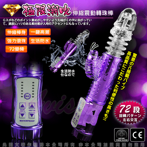 最新強力電動伸縮按摩棒,可同時震動陰道、陰核,震動力強勁!耐用、耐操,同時可震動,遠遠超越了男性陽具所能發揮的體能極限,強烈的戳幹力,幾乎讓人無法一手掌握,再怎麼強烈的燎原慾火,也會被它所撲滅夷平。中間的環紋部分不停地伸縮、抽動,在您的私處進出、摩擦;小蝴蝶的拍打、添吸著您最敏感的陰蒂……