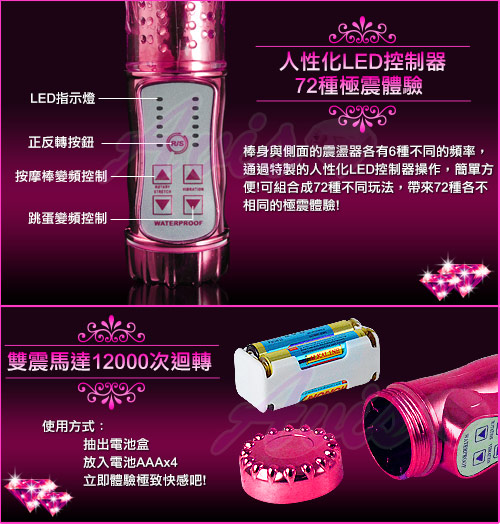 12速變頻震動,6速伸縮+迴旋滾珠!最新潮的多種刺激模式,旋轉速度更加人性化,使用時微調更精確,無懈可擊!