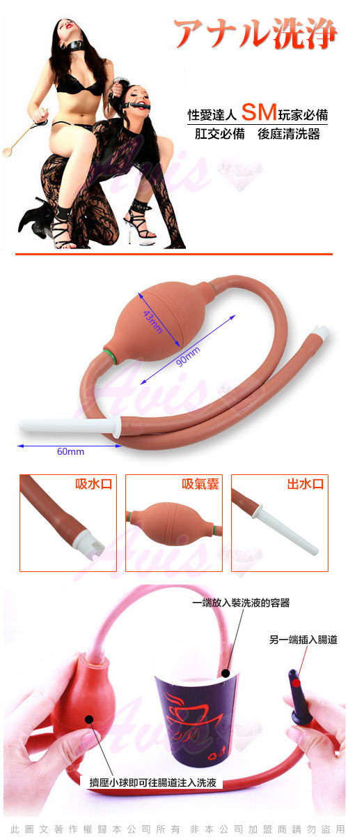 .一端放入清洗液的容器,另一端插入後庭,擠壓小球即可往腸道注入洗液