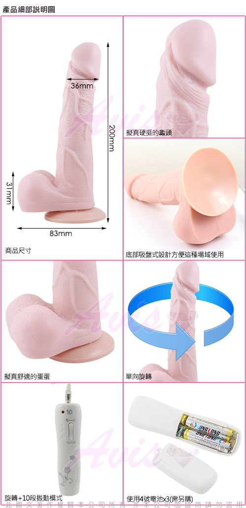 .主商品:金罵沒ㄤ-10段變頻 單向旋轉逼真按摩棒(L) x 1