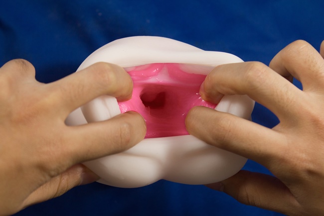 內部材質是這種黏度較高的素材,濕黏的雙重黏膜材質,看得出日本人模造的功力
