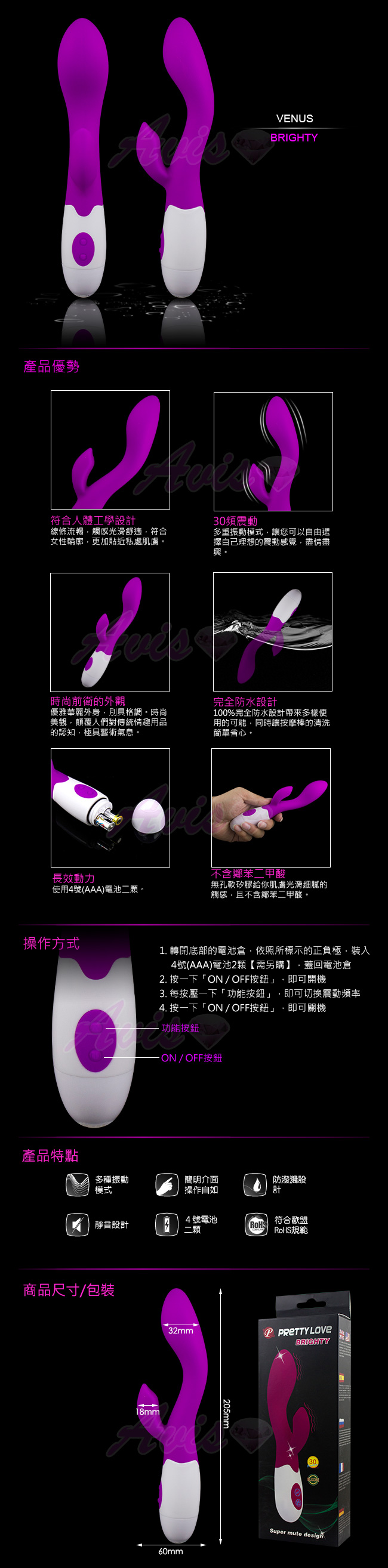 BRIGHTY 布蘭蒂-多功能雙震動 30頻 時尚精品智能按摩棒-紫