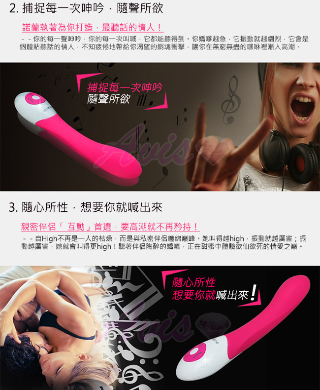 首次將聲音控制技術帶入情趣領域,內部設有軍事級聲控傳感器,就像一雙靈敏的耳朵,能精確捕捉人聲與音樂聲,將聲音轉變成震動頻率,帶給你前所未有的快感
