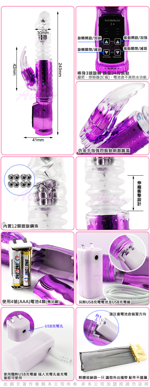 .商品名稱:第五代-加藤鷹潮吹指-72段 電池/USB 電鍍款(伸縮式)變頻滾珠G點按摩棒-紫*1