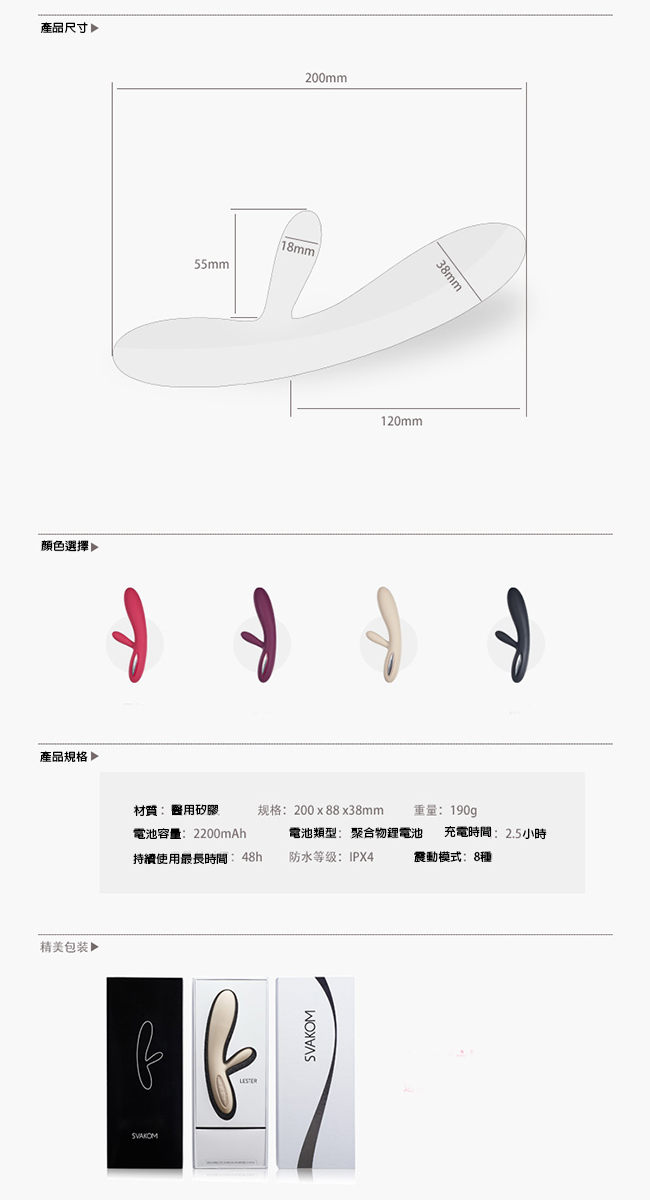 .商品內容:美國SVAKOM Lester 萊斯特 (獨特加熱鍵)雙重功能智能模式8段變頻防水按摩棒 X1