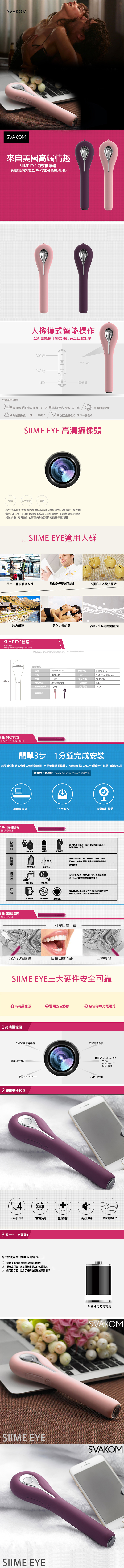 美國SVAKOM SIIME EYE 智能6段變頻 高清鏡頭 陰道內窺按摩棒 優雅粉