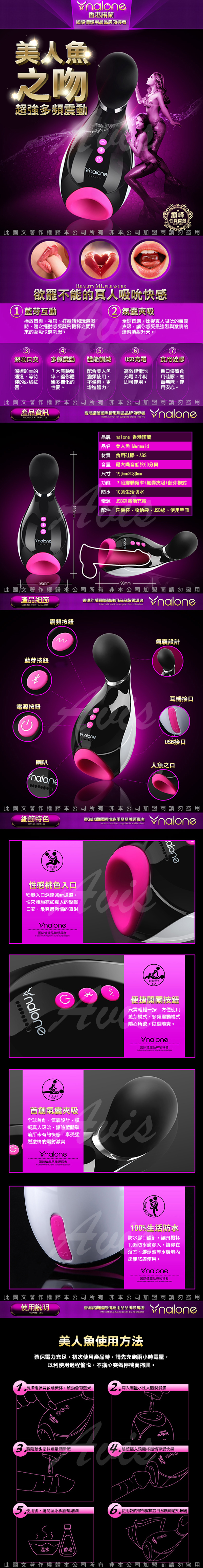 .主商品:香港Nalone Mermaid 美人魚之吻 七段變頻 藍牙互動口交 氣囊自慰飛機杯 *1