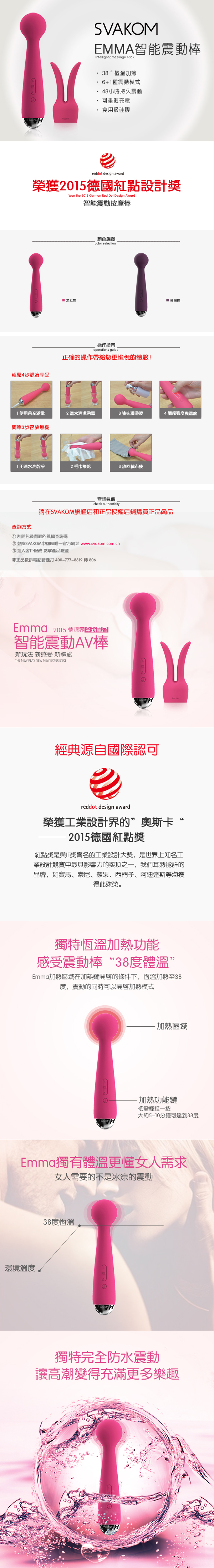 美國SVAKOM Emma 艾瑪 (獨特加熱鍵) 智能模式 震動AV棒 搭配AV頭套 櫻桃紅