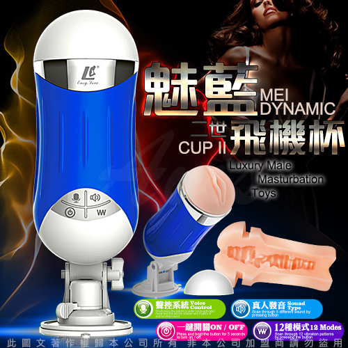 .商品內容:魅藍二世 真人發音+聲控 50頻震動 吸盤自慰杯 天空藍 USB充電
