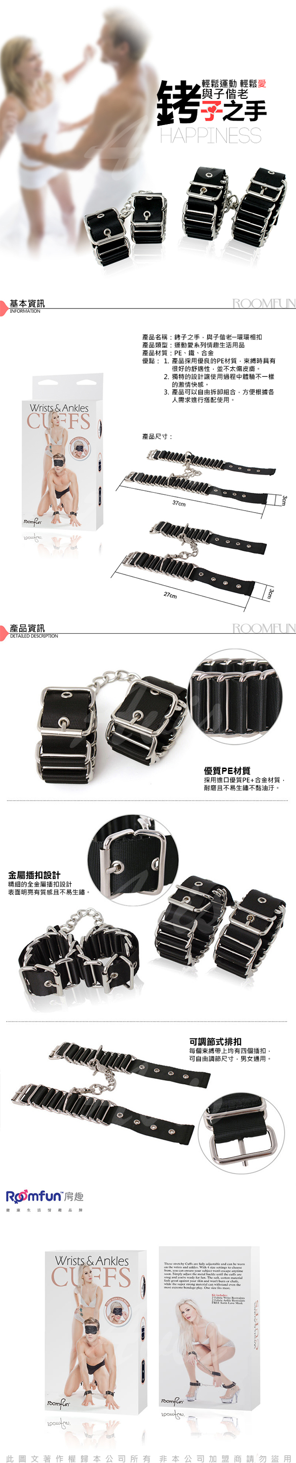 .商品內容:美國Roomfun SM環環相扣 多環節手腳銬