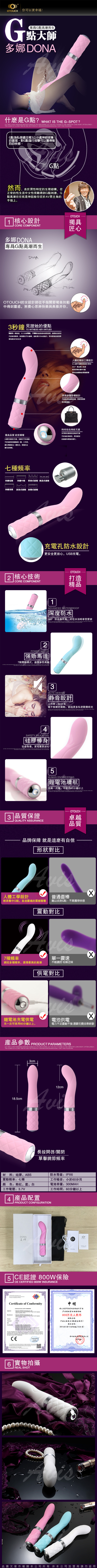 .商品名稱:OTOUCH 多娜 DONA 7段變頻 女用G點 防水矽膠按摩棒 USB充電 粉
