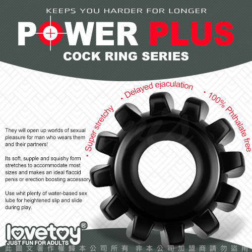 .主商品:POWER PLUS 延時加強鎖精環 齒輪型 黑