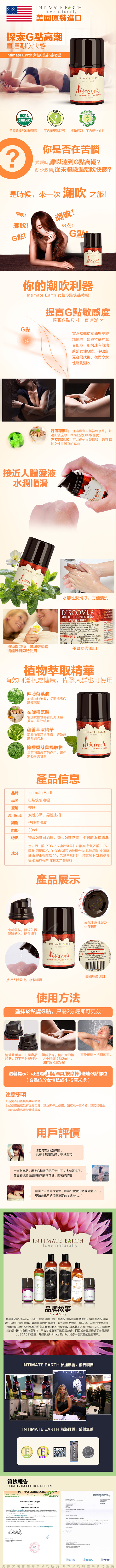 .商品內容:美國Intimate-Earth Discover G-spot gel 女性G點快感凝露 30ml