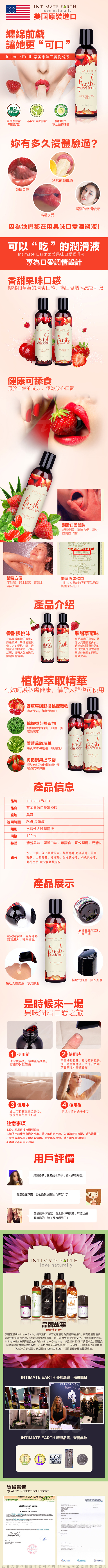 .商品內容:美國Intimate-Earth Fresh Strawberries 水果味口愛潤滑液-草莓 120ml