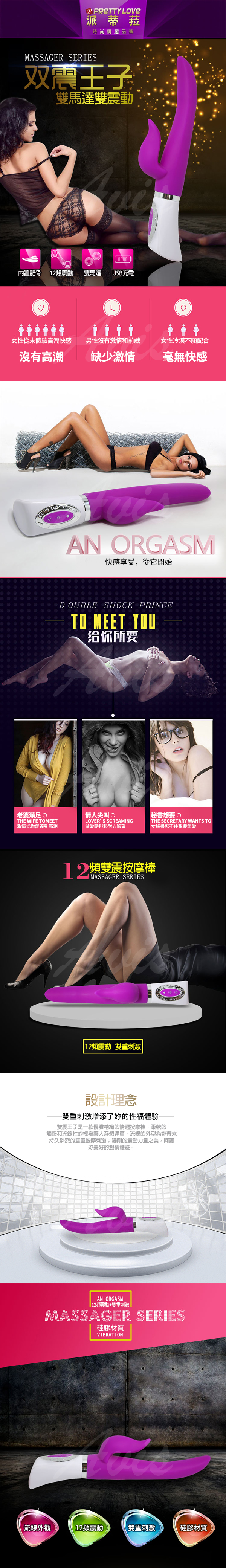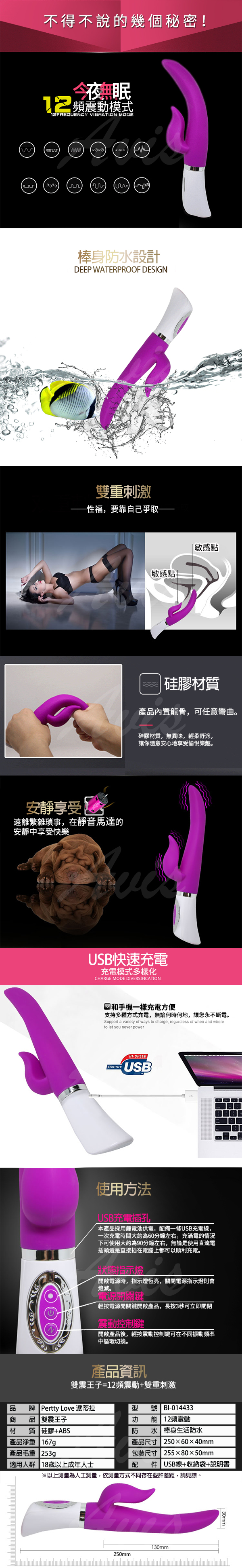 內置龍骨,12段變頻,雙馬達,USB充電