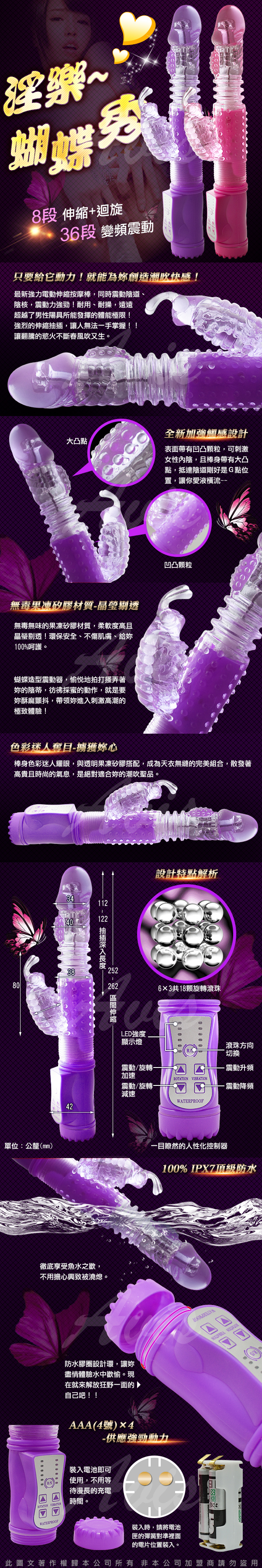 主商品:淫亂蝴蝶秀 8迴旋X36段變頻滾珠伸縮式按摩棒