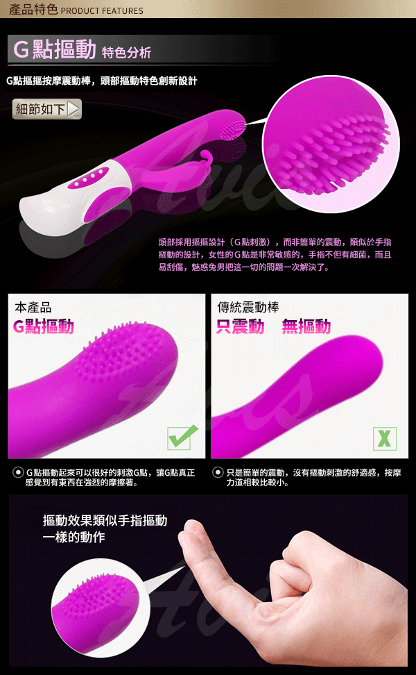 而非簡單的震動,類似於手指摳動的設計,女性G點需要明顯的刺激