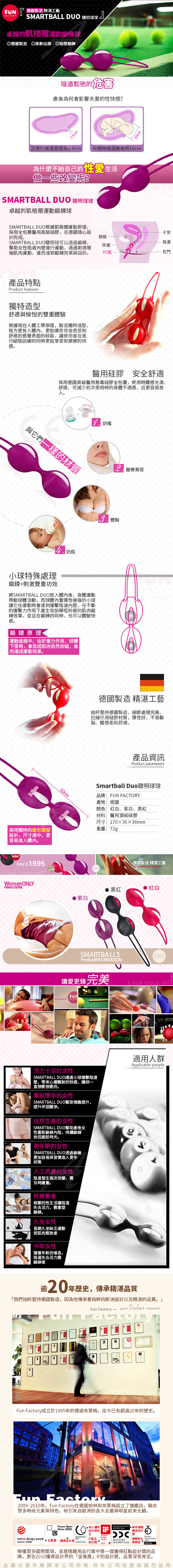 聰明球球是極機密的女性情趣娛樂和運動!聰明球球是FUN FACTORY 德國愛情工廠的原創玩具,並且榮獲多項專利肯定。