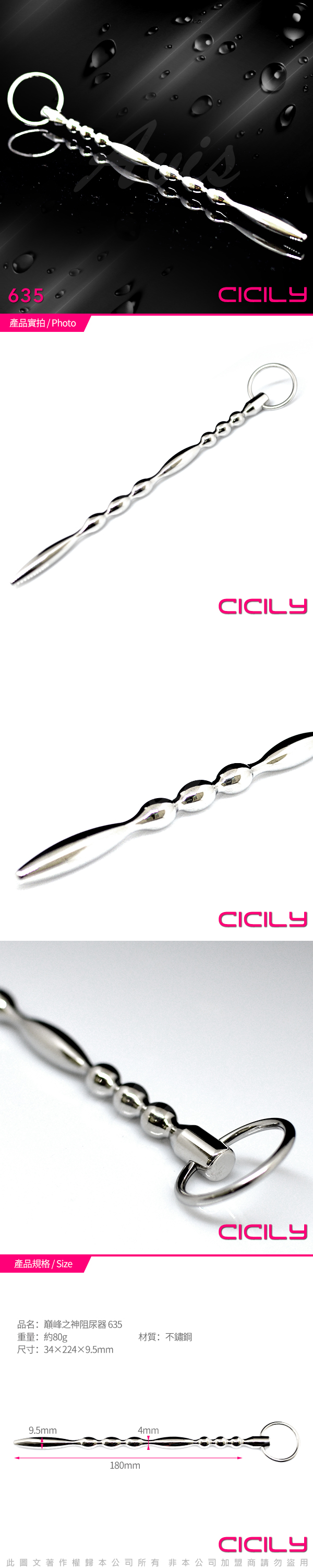 虐戀精品CICILY 巔峰之神  拉環金屬棒阻尿器