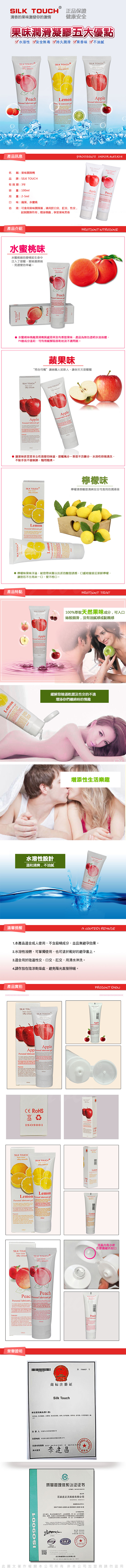 .商品名稱:SILK TOUCH Apple 蘋果口味口交、肛交、陰交潤滑液 100ml