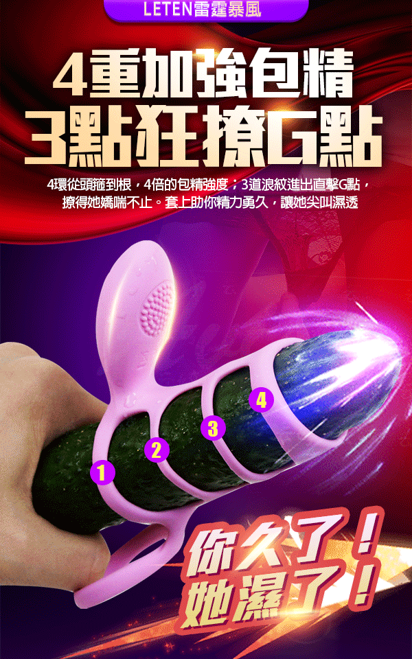 4環從頭鎖到根,4倍的包精強度,3道浪紋進出直擊G點