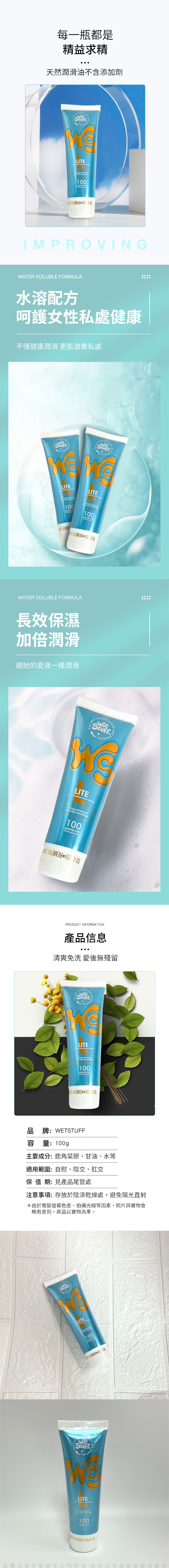 品名:澳洲Wet Stuff LITE 輕盈配方 人體潤滑液 90g