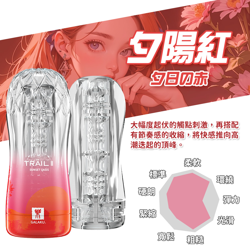 GALAKU-TRAIL II 立體通道自慰訓練杯-夕陽紅 凹凸觸點型