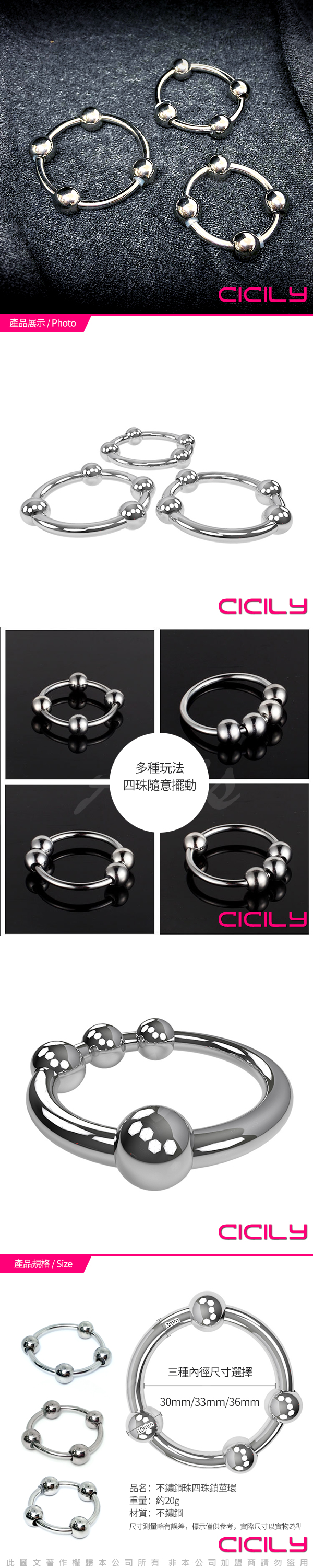 .商品名稱:虐戀精品CICILY 金屬不銹鋼 四珠鎖精環 陽具陰莖環
