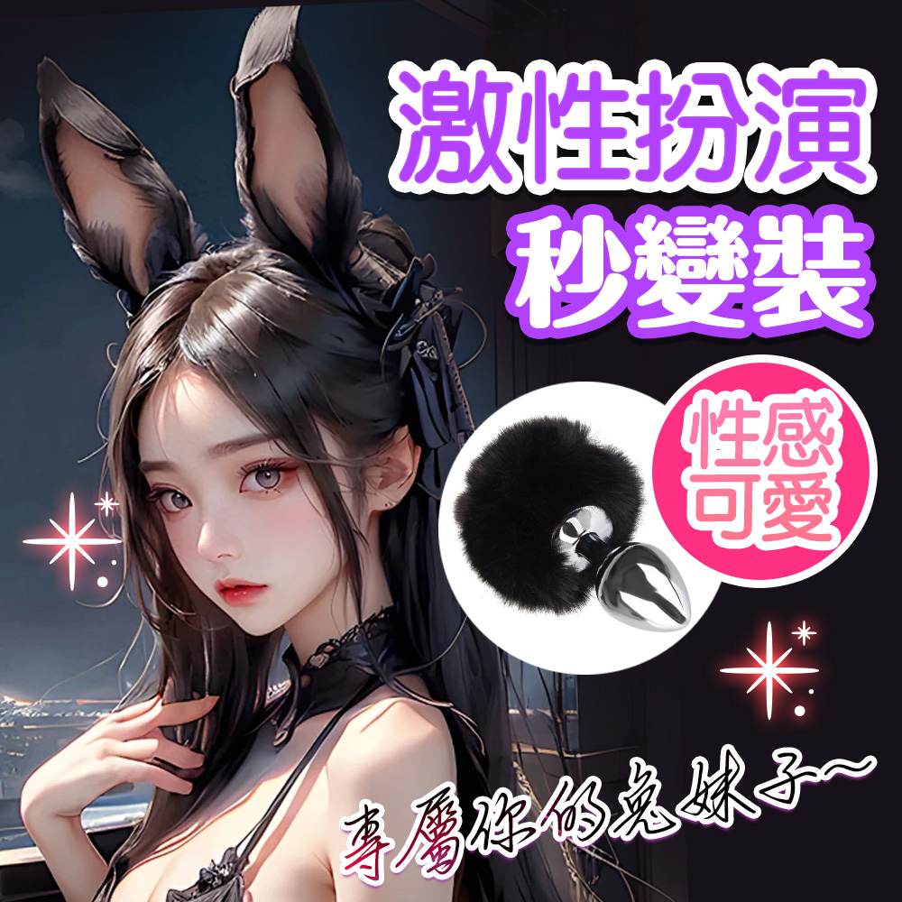 .主商品:小兔兔 兔尾球尾巴 金屬肛塞 SM 激性扮演 黑