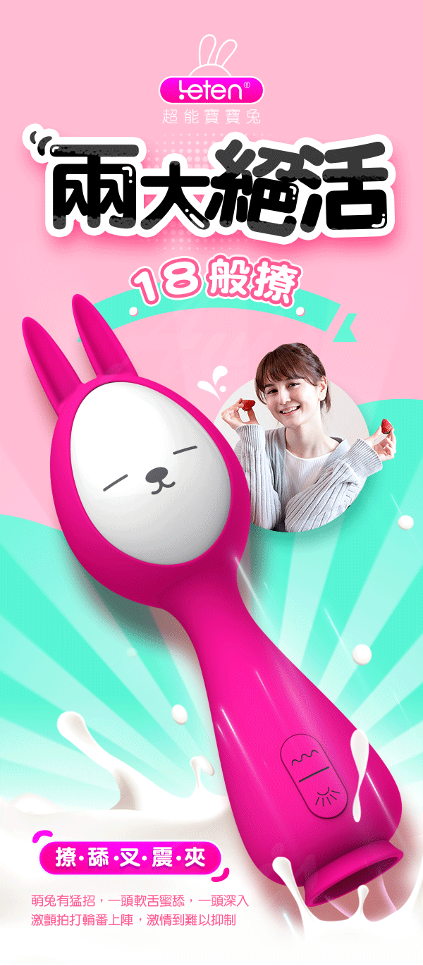 品名:Leten-超能寶寶兔 10震10舔 吸舔撩動跳蛋 按摩棒