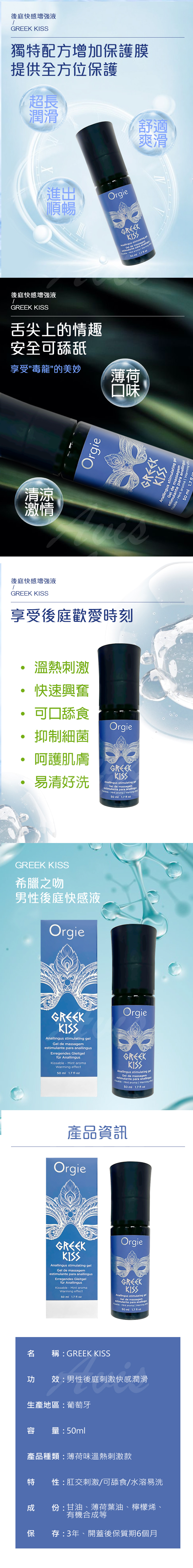 品名:葡萄牙Orgie GREEK KISS 男同志用後庭快感加強口交凝膠 50ml