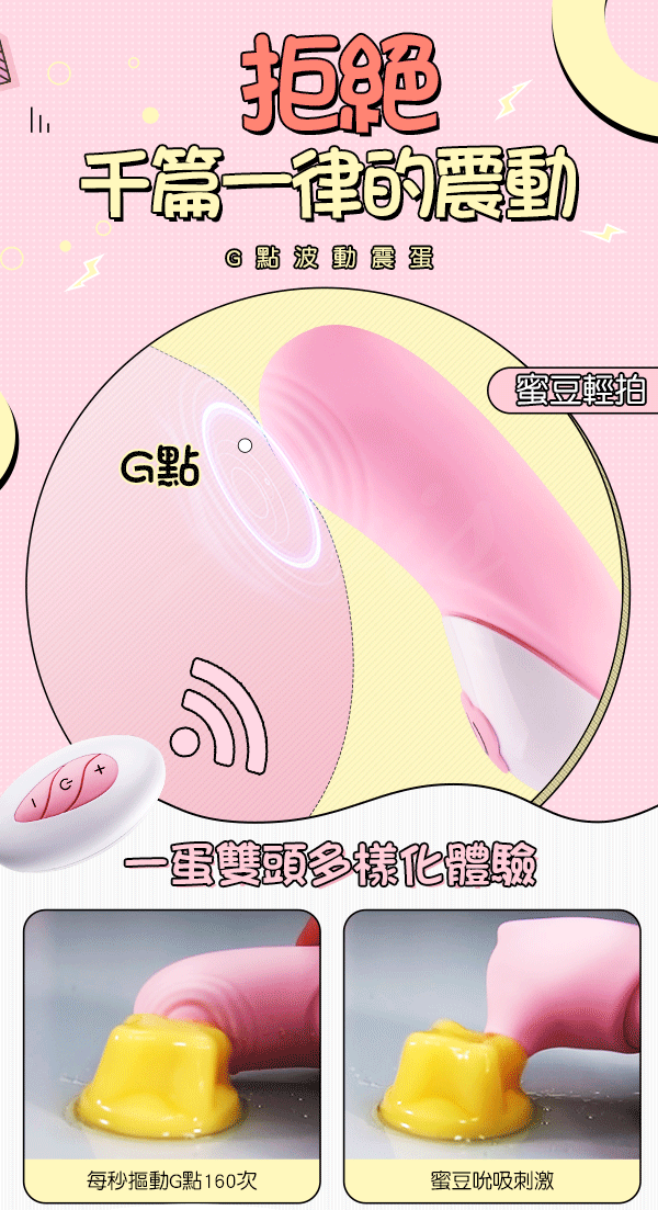 品名:萌萌兔 10段變頻蜜豆吮吸 無線遙控震動跳蛋-(附吸吮頭套)