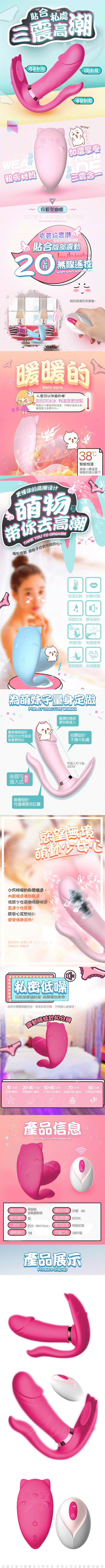.主商品:萌萌貓 智能加溫 7段變頻遙控穿戴按摩棒(陰蒂+G點+後庭)
