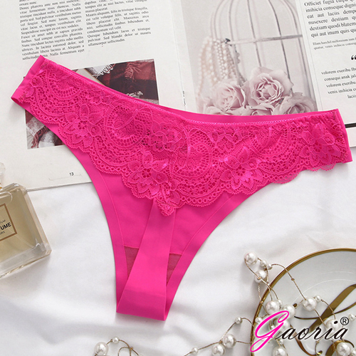 【Gaoria】寵愛甜心 無痕蕾絲花瓣冰絲 丁字褲 玫紅