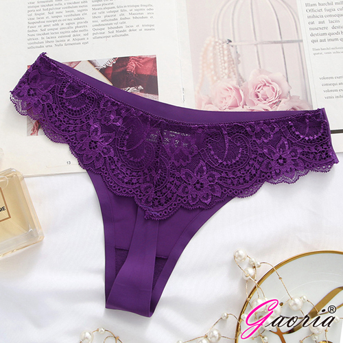 【Gaoria】寵愛甜心 無痕蕾絲花瓣冰絲 丁字褲 紫