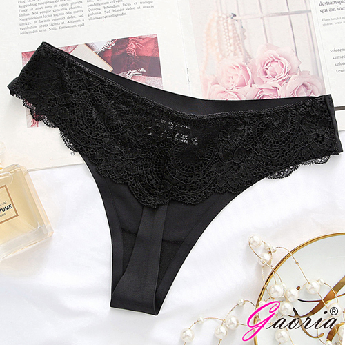 【Gaoria】寵愛甜心 無痕蕾絲花瓣冰絲 丁字褲 黑