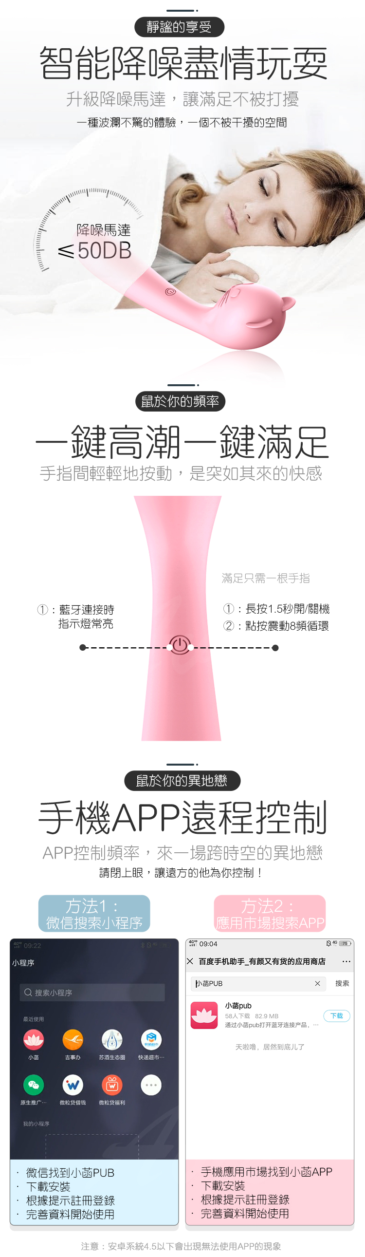 鼠於你的性福時光棒身柔軟彈性,隨性彎曲貼合女性生理點不拉傷私處,能有效刺激G點喔~採用USB充電隨處隨充,隨遇而安讓快感來的更快。8種高潮震顫深層穿透,頭不震動尾部插入,外不滿足蜜豆,內部衝擊G點蜜道。且靜音防水給您一個安穩的空間,盡情享受高潮