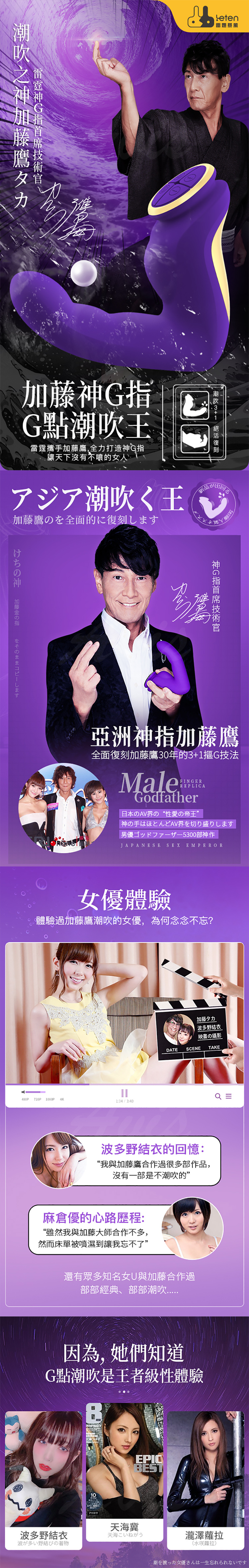 Leten-加藤鷹神G指 10段變頻智能加溫摳動按摩器 紫
