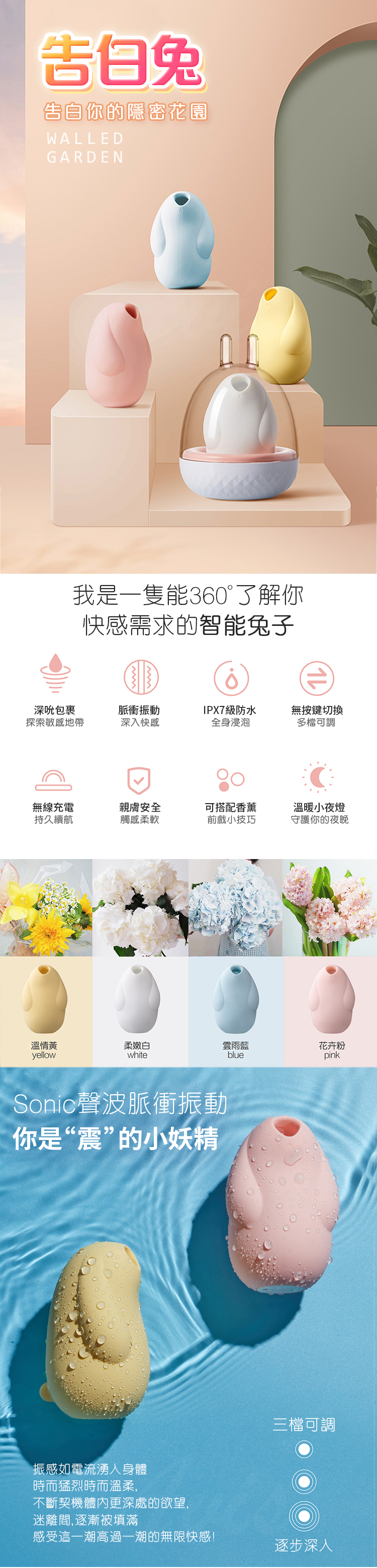 商品名稱:告白兔 真空吸吮+聲波 脈衝震動器 底座薰香+夜燈功能