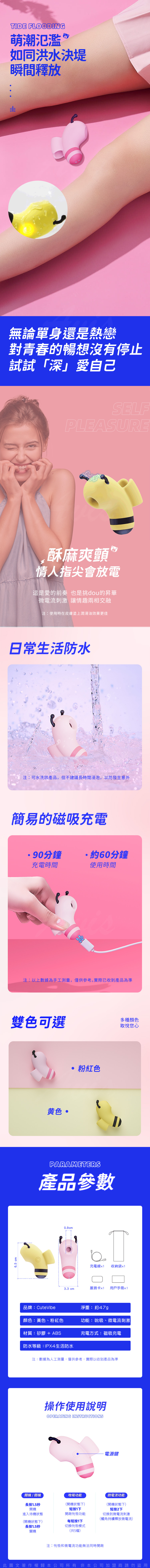 名稱:Cutevibe-小蜜蜂 5頻吸吮 手指按摩器-黃