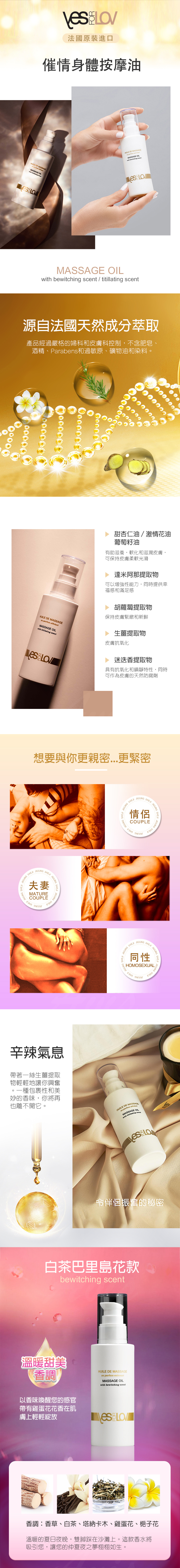 產品名稱:YESforLOV|催情按摩油|白茶巴里島花味 100ml