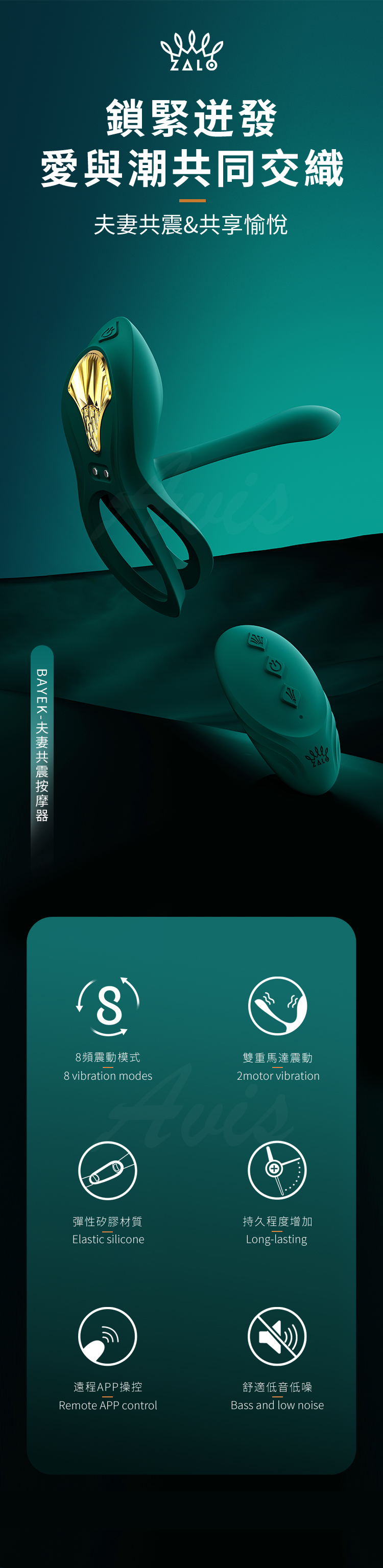 產品名稱:Zalo Bayek|貓神情侶共振器|四點全面共振