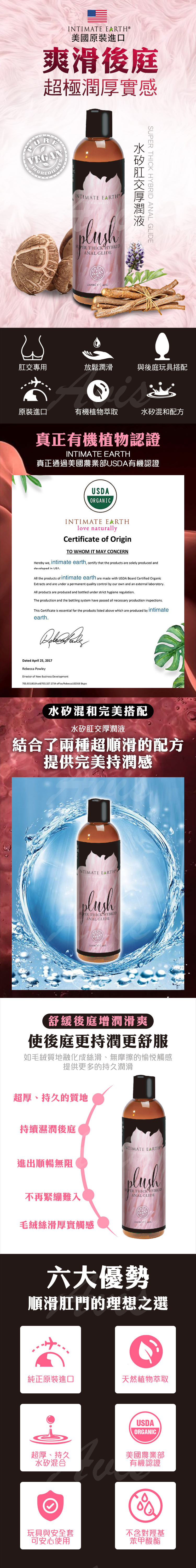 品名:Intimate Earth |Plush|水矽混合濃厚肛交潤滑液 120ml