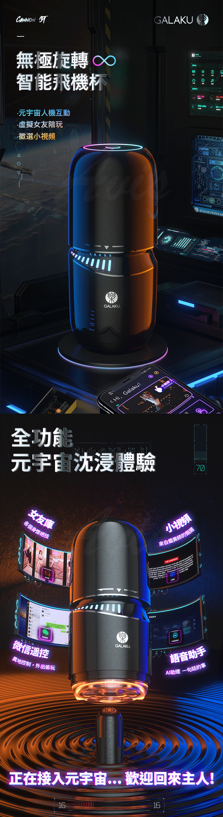 GALAKU|小鋼砲|無極旋轉|智能互動飛機杯