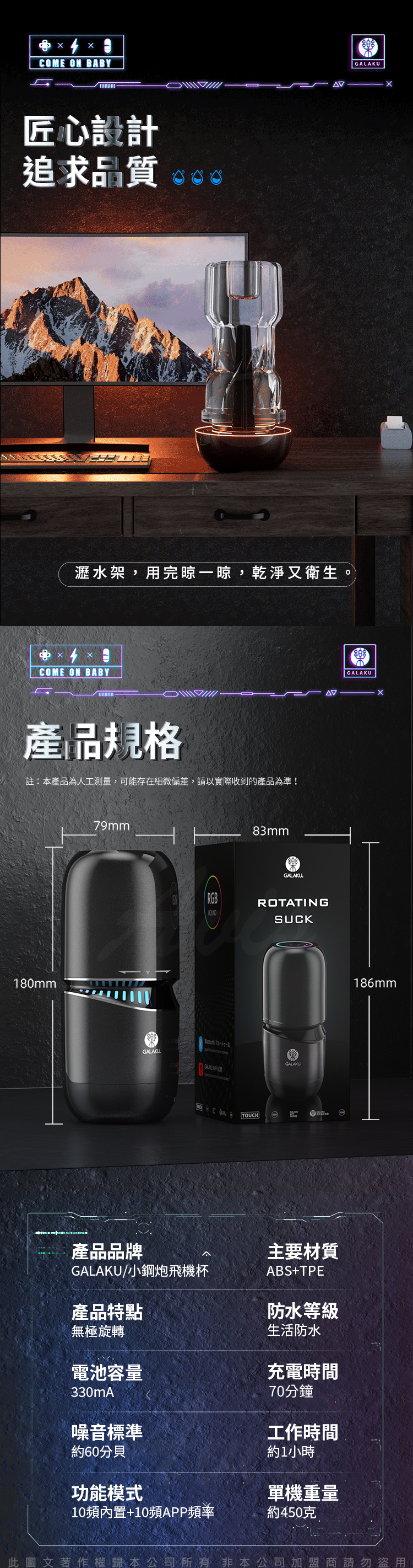 商品名稱:GALAKU|小鋼砲|無極旋轉|智能互動飛機杯