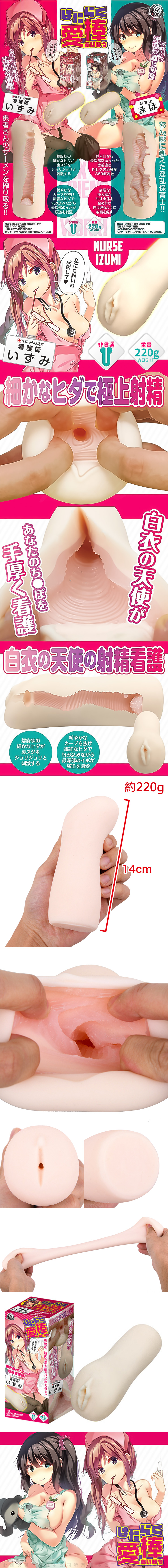 勤奮工作的淫亂護士泉醬的那裡,是以細膩的皺褶進行刺激的粗糙型。白天認真工作的白衣天使,到了夜晚便會徹底變身,細心地照顧你的陰莖。入口處立刻有螺旋狀的細皺褶,隨著緩慢的曲線進入,會包裹住你,並刺激尿道。這款飛機杯能讓你盡情享受飢渴的淫亂保育士的部位。與勤奮工作的護士泉醬一起,在醫院裡的每個角落瘋狂享受吧。