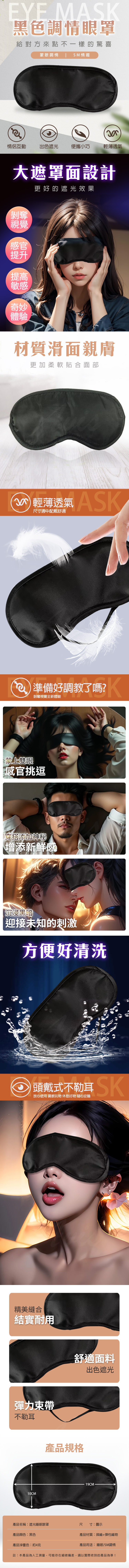 這款遮光眼罩專為剝奪視覺感官而設計,讓其他感官更加敏銳,進一步提升體驗的深度。遮擋外界光線,讓您進入一個完全專注於感覺的世界,激發身體的敏感度,無論是觸覺、聽覺或其他感官,都會變得更加敏銳。