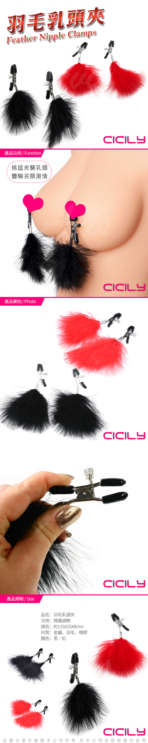 .商品內容:CICILY 羽毛乳夾-紅